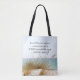 Uma bolsa de tote personalizada de aspas inspiradoras retrata uma bela praia oceânica com capim-do-mar na duna e apresenta a Bíblia Verse 2 Timothy 1:7, "Porque DEUS não nos deu um espírito de medo, mas de POWER e de AMOR e de uma MENTE SONORA."