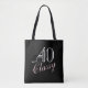 40 e o Classy Black Elegant Script Birthday Tote Bag. Design elegante com script de tendência em cores brancas e rosa. A bolsa é um presente excelente para uma mulher celebrando sua aniversário de 40 anos.