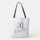 50 e Classy Elegant Black Ouro Script Birthday Tote Bag. Design elegante com script de tendência em cores preto e ouro. A bolsa é um presente de excelente para uma mulher comemorando seu 50º aniversário.