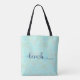 Saco com "A Praia é Meu Lugar Feliz" num estilo tipográfico moderno com sutil fundo de tartaruga, peixe etc.