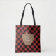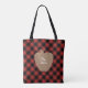 Um bolsa para os professores que caracterizam uma serapilheira inspirou a silhueta da maçã sobre um fundo da xadrez do búfalo vermelho e preto. Personalize o nome.