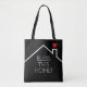 Um coração vermelho sobre o telhado de uma casa com as palavras "Abençoado Esta Casa!" aparece na frente e atrás desta bolsa de tote. MUDE A COR DE FUNDO para qualquer coisa - mostramos preto.