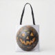 Uma bolsa de tote de abóbora divertida para comprar. Ilustração idêntica em ambos os lados.
