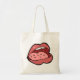 Esta design é uma boca aberta. A boca são os lábios e a língua está aberta. Este design de boca aberta parece excelente neste Saco de Tote