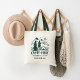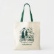 Crie um bolsa exclusivo personalizado para a próxima viagem de acampamento ou excursão ao ar livre. Tote bag apresenta a citação "acampamento mais, menos preocupações" em cartazes verdes angustiados por baixo de uma ilustração desenhada manualmente de uma tenda de acampamento colocada numa floresta de pinheiros com uma ascensão lua crescente sobre picos de montanha com capa de neve. A maneira perfeita de comemorar uma viagem especial, ou para qualquer um que adora acampar, você pode personalizar esta bolsa com sua escolha de texto embaixo da design. Adicione seu destino de acampamento, o ano ou um nome de família para um toque especial. Adoramos com cordas verdes para combinar!