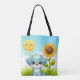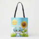 Bolsa Tote Adorável Puppy com girassol e sol sorridente