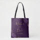 Esta linda bolsa tote moderna para Mãe da Noiva apresenta um design de ágata em aquarela roxa aparada com brilho dourado falso em dois cantos. As palavras "Mãe da Noiva" aparecem em escrita à mão dourada sobre um fundo roxo. Adicione o nome dela em fonte copperplate dourada.