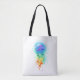 Água-viva grande, iridescente, desenhada artisticamente, brilhante, com longos tentáculos em branco, pintada sobre fundo de aquarela multicolorido. Água-viva arco-íris.