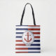 Bolsa Tote Âncora náutica vermelha do navio, marinho, faixa v
