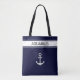 Ancoragem náutica moderna de cinza prateada e texto aquário em marinho azul Tote Bag.