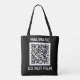 Um escudo para os que não querem ser filmados ou digitalizados. O código QR atualmente leva a um site chato, mas pode ser personalizado para qualquer site que você quiser. O texto também pode ser personalizado. O design é o mesmo na frente e atrás. Um provável dissuasor contra quem quer que você queira filmar você quando você prefere que não, pois eles não vão querer arriscar seu dispositivo apontando-o para o QR. Não é recomendado que você use malware ou use esta bolsa para quebrar qualquer lei.