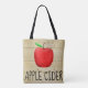 Pintura de maçã bonita contra fundo de madeira. O texto diz "Apple Cider" numa fonte rústica divertida.