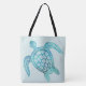 Por cima de um saco de impressão, feito em aqua leve com pequenas bolinhas brancas e gráficos de uma tartaruga marinha aqua. Personalize para adicionar qualquer texto que você queira a este bolsa de propósito único, perfeito para comprar ou ir à praia.