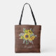 Lindos girassóis em um fundo de madeira rústica adornam esta bolsa tote. Personalize-a com seu nome. Um acessório de verão perfeito ou presente para madrinha. Criado especialmente para você por Blackberry Boulevard.