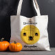 Prepare seus fantasmas e duendes para a travessura ou gostosura com esta bolsa de Halloween personalizada. Com uma imagem de três aranhas pretas em uma teia de aranha, tipografia cursiva que diz “Feliz Halloween”, além de um nome personalizável, esta bolsa é perfeita para carregar guloseimas. Adicione o nome da sua criança para criar uma bolsa única que pode ser usada ano após ano.