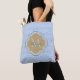 Um saco de tote com um crachá de folha de papel azul-claro, com um na moda, que pode ser personalizado adicionando facilmente o seu monograma e nome. Isto é parte da coleção de Primavera de Monograma de Pequeno Garoto Azul Escala de Peixe Aquecido.