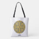 Sacos de tote temáticos do caleidoscópio para o seu uso diário. Reflexão. Harmonia e equilíbrio em amarelo com um toque de azul.