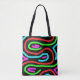 Esta interessante design de arte moderna nesta bolsa de tote é algo diferente que você não encontrará em uma grande loja. Você poderia usar esta bolsa de tote para comprar o dia a dia, suprimentos escolares e muito mais. Este padrão único foi criado por mim.