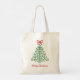 Saco moderno de Natal com um rabisco simples e fofo de uma árvore de Natal com um arco junto com a saudação editável "Feliz Natal".