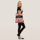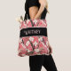 This lovely Asian-inspired tote bag features a Japanese style floral print of dusty pink, light peach, garnet red, creamy white, and brown. Your monogram name appears in a stylish typeface in pink against a color block of black.