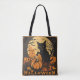 Bolsa Tote Assombrando Gato Negro em Pumpkin com Lua e Morceg