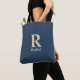 Bolsa Tote Azul Clássico E Vanilla Inicial/Primeiro/Nome Da F