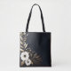 Bolsa Tote Azul escuro com flores Douradas e brancas
