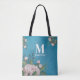 Carregar de estilo com este monograma bolsa com sotaque elegante de cor d'água, realces florais e delicadas rosas cor-de-rosa pinceladas. Personalizado com o seu nome e nome inicial, este saco faz uma escolha cuidadosa para ideias de presentes monogramas. Projetado para ser chique, feminina e feminina, ele combina beleza com função como um sofisticado saco reutilizável de na moda. Um acessório bonito mas prático, perfeito para uso diário, comprar ou dotar-se de elegância eterno.