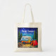 Camper Camping Tote Bag com arte de Campervan Azul Verde Aquarela, floresta e lenha, Use personalize este modelo para alterar o texto, Mais produtos com este design estão na coleção abaixo