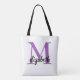 O saco de tota simples é personalizado com um grande monograma inicial - escolha o seu primeiro ou sobrenome inicial - em roxo e o seu primeiro nome em letra chic. Ideal para si mesmo, para as damas de honra, festa de solteira ou qualquer ocasião. Mais cores em nossa loja.