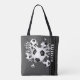Este saco de tote temático de futebol legal apresenta uma "explosão" de esferas e cinzas de futebol de tamanho variado e formas de estrelas pretas - a estrela preta tem um pequeno padrão de bolinhas brancas - personalizar com seu nome orientado verticalmente em faixas de varSIDADE pretas na borda direita, frente e verso - o fundo da cinza escura é personalizável - por katz_d_zynes