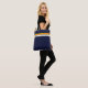 Este design de desportista chic apresenta um fundo azul marinho com duas faixas de competição branca e amarela ouro, de borda superior e fina.