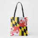 Os gráficos e as cores distintivos da bandeira do grande estado de Maryland cobrem este saco.