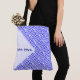 A bandeira grega e a palavra HELLAS abaixo em azul, ladrilhada diagonalmente para um visual artístico. A bandeira mostra listras azuis e brancas com uma cruz azul e branca na área superior direita. Um espaço branco texturizado com quadrados ondulados reserva um local para o seu nome para personalizar esta bolsa ou criar um presente. Divertido para viajantes. Ótimo para celebrar o Dia do Não.