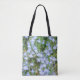 A fotografia original de azul bonito esquece-me de que as flores que não recebem um efeito de abstrato pintado fazem um saco de tote bonito e colorido.