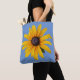 Bolsa Tote Bandeja de Foto Azul de Flor Amarelo