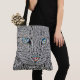 Um saco de tota impressão, personalizado, que apresenta um fundo de gato fractal artístico preto e branco em ambos os lados do saco.