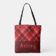 Bolsa Tote Banheira do Monograma da Xadrez Vermelha bonito Ru