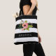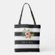 Este Saco de Tote personalizado "Compra Floral das Bandas Brancas Negras Clássicas" é um excelente todos os dias para levá-lo através do seu dia! Carregar saco de tote personalizado e vá para a rua, supermercado, escola ou parque. É uma maneira perfeita de mostrar seu próprio estilo.