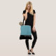 Esta linda bolsa de roupas de frente mostra a palavra "Madrinha de casamento" em branco de texto colorido sobre preto com a bolsa de topo em azul de Piscina tropical. Tem bastante espaço para texto personalizado. Gráficos e texto estão em ambos os lados desta bolsa de tote. Alça preta. Personalize mais ou mais comprares conforme mostrado.