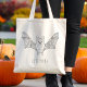 Carregar um toque do estilo mínimo de Halloween onde quer que você vá com esta bolsa de tote apresentando uma simples ilustração de uma linha de um morcego com asas abertas. A design é moderna, limpa e sutil, perfeita para o outono ou para o uso diário. Uma área de texto personalizável permite que você adicione um nome, fazer o saco exclusivamente seu ou um presente pensativo.