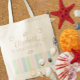 Aniversário do clube de praia com listras de retro cabana e conchas