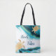 Gold tribal turtles on a teal aquamarine white marble ink background beach vibes tote bag.