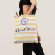 Traga um pouco de sol para onde quer que vá com esta bolsa brilhante e brilhante de tote de verão. A design de inspiração costeira inclui amplas faixas amarelas e brancas de leitelho, o roteiro "Beach Vibes" em marinho clássico e um monograma personalizado dentro de círculos ao estilo do protostole. Perfeito para dias de praia, comprando e uso diário, a design relaxada mas elegante combina diversão e sofisticação.