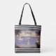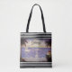 Paisagem e pintura de iates e listras brancas e pretas Tote Bag. O texto de fuga pode ser personalizado. Bolsas, bolsas de compra, sacos de compras, sacos de moda.