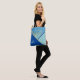Um padrão geométrico contemporâneo, esta bolsa de ombro para a frente da moda tem um bloco colorido com impressão azul colorido. Personalize com monograma para um bolsa personalizado que faz um presente maravilhoso ou um presente legal para você mesmo.
