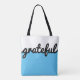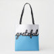 Saco de tote preto branco claro e azul moderno e simples, com carateres de escrita gratos. Perfeito para criar uma atmosfera de positividade e gratidão enquanto você está fora e por aí. Ideal para quem pratica a lei da atração, abundância, manifestação e que quer se concentrar em todas as bênçãos e aspectos positivos da vida.