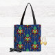 Bolsa Tote Blue and Gold Art Deco Floral Ornament