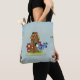 Um pássaro azul fora de uma linda casa de pássaros. Este design parece realmente eficaz nesta Tote Bag