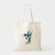 trabalho de arte de aquarela tradicional de um pequeno beija-flor levitante em cores azuis em um saco de tote